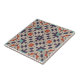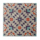 This ceramic tile is a true work of art, featuring a captivating geometric pattern that combines both complexity and elegance. The design showcases a symphony of shapes, including stars and hexagons, meticulously arranged to form a harmonious mosaic. The colour palette is a rich tapestry of purples, oranges, and teals, set against a speckled beige backdrop, creating a vibrant yet sophisticated look.