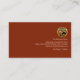 Overleaf, in a dark brown cover, details are at the right wall with the gold logo at the top followed by the business name, its contact details and a slogan.