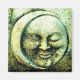 Smiling sun and framed by a crescent moon. Done in a stone look in colours of green, gold, bronze and black.