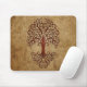 This symmetrical tree design features intricate tribal swirl patterns. The rough textures and brown colors give the pattern the look of an ancient carving. Cracks run throughout the background giving this mouse pad a fractured look. The leaves, branches and roots are represented with beautiful flowing lines creating a bold and stylish symbol of nature.