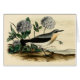 Vintage painting of an American Stonechat or wren. Cute little grayish bird in a southwest background with dusty purple hydrangeas. Illustrated in the Victorian Era, 1862 by artist and American ornithologist John Cassin.