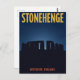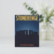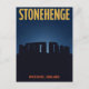 Capture the mystery of this ancient monument with this dramatic, vintage-style travel postcard for STONEHENGE. The illustration features the famous ring of standing stones in Wiltshire, England, silhouetted against a beautiful, deep blue, starry night sky. This powerful, minimalist design is perfect for history buffs, archaeology enthusiasts, or anyone sending a unique greeting from this iconic UNESCO World Heritage site.