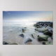 A beautiful day photographed on a beach in Denmark by the North Sea. Smooth water and shiny rocks.