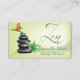 Zen Contemporary Spa and Therapy massage therapist Business Card features a butterfly, hot stones and bamboo leaves