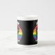 Gay pride speciality mug features defiant fist on rainbow background with 1969 - NYC's Stonewall riots remembrance text.