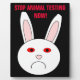 This awesome plaque features the sad face of a white rabbit. This rabbit has a big frown on its face because it is a lab rabbit that has had cosmetics tested on it. The whites of its eyes are red and swollen. The design has been created to bring to attention the unnecessary suffering caused by the testing of cosmetics on animals.