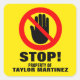Help keep others off touching your belongings with this graphic yellow, red and black named STOP! hands-off warning symbol sticker. Reads STOP property of and customise with your own name. Perfect for school, college, work, and other places where your property could be accidentally touched or mixed up. Ideal to keep safe and reduce germ risks. Designed exclusively by Sarah Trett for www.mylittleeden.com