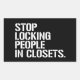 Stop locking people in closets rectangular sticker