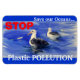 This magnet with a message features a watercolor painting of two endangered Laysan Albatrosses floating amid plastic trash. One million seabirds die each year from plastic pollution. Show your concern for our oceans and our planet when you use this magnet.