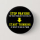 Stop Praying Start Thinking 6 Cm Round Badge
