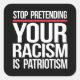 Stop pretending your racism is patriotism square s sticker