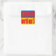 Excellent item. I used them for envelope sealers for a 50 year reunion whose mascot was a lion. Paper material is thick. Also, very colorful! Easy to peel and stick. Excellent! Excellent! Excellent!