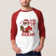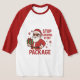 Get some smiles with this "Stop Staring at My Package" Santa 3/4 sleeve Raglan T-Shirt for the holidays with bold red lettering and the image of Santa wearing some sunglasses and holding a wrapped Christmas package. Have some fun this holiday season with one of these shirts. They look great in this red and white style, but feel free to customize it with your favorite shirt style, size and color.