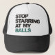 Funny expression in tennis. Stop starring at my balls. This actually means the real balls, not the "other" balls...