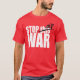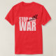 STOP ALL WAR is the clear and unambiguous cry of a population repulsed by the political tactics of the past and determined to see the human condition evolve. This design works best on red. It is not suitable for white, black or navy shirts.