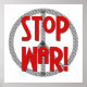 A grey peace symbol and red text that reads "Stop War!" on anti-war, pro peace T-shirts, mugs, buttons, magnets, stickers, cards, and more.