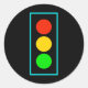 Bold graphic depiction of the Traffic Control Signal Light, in red, yellow, and green, with light blue border.