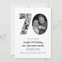 70th Birthday Number 70 Photo Collage Black White