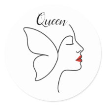 Line Art Portrait of Woman with Red Rose Classic Round Sticker