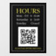 Store Hours Open Sign, QR Code, Black Yellow White