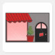 A storefront window and door with the open sign showing. This design looks really effective on these Stickers
