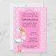 Pink dot background with a stork and baby girl. Add your party details to customise the perfect baby shower invitation.