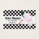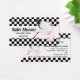 Baby Shower Save the Date -Black and white chequerboard and adorable stork carrying a pink wrapped baby girl- Cute baby shower Save the Date business card for handing out at work or playground ... where ever - easier than sending invites for recipients close to home