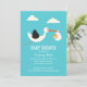 Celebrate the new arrival in style with these adorable stork Baby shower invitations. Each one features a stork delivering a baby. © Mood 4 Cute