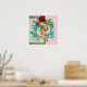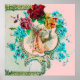 Elegant ,colourful,vibrant vintage style floral design with a baby and flying stork among the beautiful romantic pink,red roses,teal blue spring flowers by Bulgan Lumini (c).Easy to customise with your own text and inizials for baby showers,child's birthday parties , or just about any event you wish!