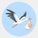 Stork Carrying a Baby Bundle Blue Classic Round Sticker