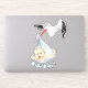 Stork Carrying Baby Funny Sticker - Custom Text