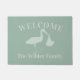 Welcome your guests to your new home with this sage green stork doormat. Just add your family's name. Makes a warm welcome for your gender neutral baby shower guests.