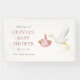 Welcome guests with charm using this Stork Delivery Pink Girl Baby Shower Welcome Banner! Featuring a sweet teddy bear in a pink bundle carried by a watercolor stork, this floral design is framed with soft pastel garden blooms for an elegant, whimsical touch. Perfect for a girl baby shower!