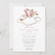 Stork Pink Clouds Bird Modern Girl Baby Shower Invitation