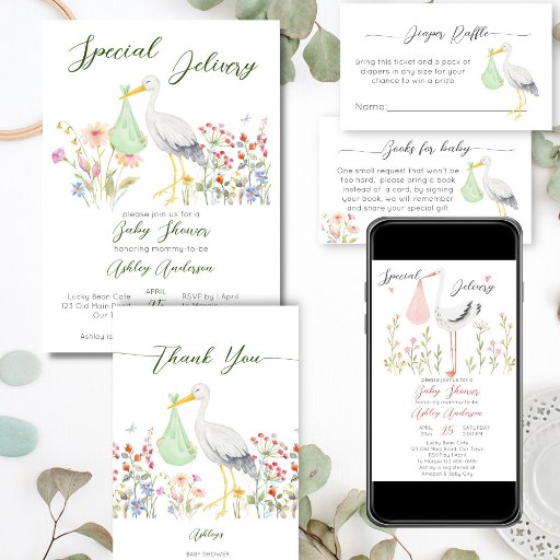 Stork special delivery funny baby shower invitation