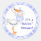 Stork & Triplet Boys Baby Shower Classic Round Sticker