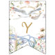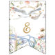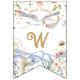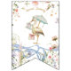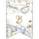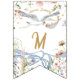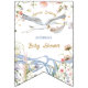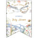 This baby shower bunting features delicate wildflowers intertwined with a blue hand painted ribbon and a vintage stork carrying a baby boy home and another stork with an umbrella and sweet baby gifts in soft watercolor tones. You can change the the text on the first and last flags, as well as, change the font, style, size, colour and placement. See the matching items in the Wildflower Ribbon and Bow Baby Shower Collection in my shop.