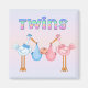 Unique Baby Shower Gifts for the New Mum or Mum to be. Baby Onsies, invitations,post cards, keyrings, magnets, button party favours, keepsake mugs and more. Each Item can be personalised with names and dates. This design is for a girl and boy twin and has pink and blue colours.