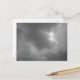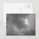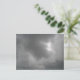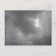 This postcard features a photograph of a gathering of dark grey storm clouds capturing the beauty and power of the weather. The menacing clouds are a mixture of dark and pale grey shades. The photograph was taken before a heavy rainstorm.