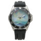 Has heft and feel of expensive stainless steel quartz wrist watches. Solid construction and good looks. Although it had a really top quality rubber strap, I substituted a stainless steel "Shark" style mesh strap, which I think is the most comfortable strap available. Perfect. True colors of original image. Clear, crisp image precisely aligned and spaced.