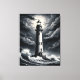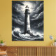 Storm Lighthouse – Dramatic Black and White Coasta Canvas Print