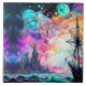 space station, stormy seas under a full Moon and a colourful abstract skies