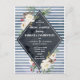 Storm grey blue stripes in watercolor background for an inky black diamond surrounded with roses arrangement. Contemporary yet feminine design is striking colour theme for a glamourous bridal shower. From champagne brunch to afternoon tea this simple postcard invitation gives all the info in a classy way.