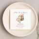 Story book new chapter bridal shower monogram printed napkins template personalised tableware, books reading themed bridal shower napkins personalised table decor, watercolor pile of books and blush roses casual handwriting font bridal shower theme for bookworms