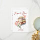Story book new chapter bridal shower thank you card, books reading themed bridal shower thank you card, watercolor pile of books and blush roses casual handwriting font