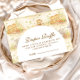 A sweet storybook-style safari design featuring gentle watercolor baby animals including lions, giraffes, and elephants surrounded by soft jungle greenery and delicate botanical details. The warm neutral palette of cream, honey gold, and soft olive creates a timeless nature-inspired aesthetic, while the elegant arched layout leaves beautiful space for personalized event details.