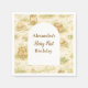 A soft and charming safari-themed design featuring gentle watercolor animals surrounded by delicate wildflowers and botanical greenery. Sweet lions, giraffes, elephants, and zebras create a whimsical storybook scene in warm neutral tones of beige, cream, and soft sage. The elegant arch layout and botanical details give this design a timeless and refined look, perfect for celebrating a little one’s special first birthday.
