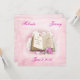 Fairy tale wedding invitation with roses on pink textured background.