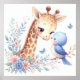 Storybook Woodland Babies Giraffe And Blue Bird Poster