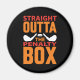 Hockey player design magnet features gold and red text on each side that reads Straight Outta the Penalty Box! Also features silhouette hockey sticks and puck.